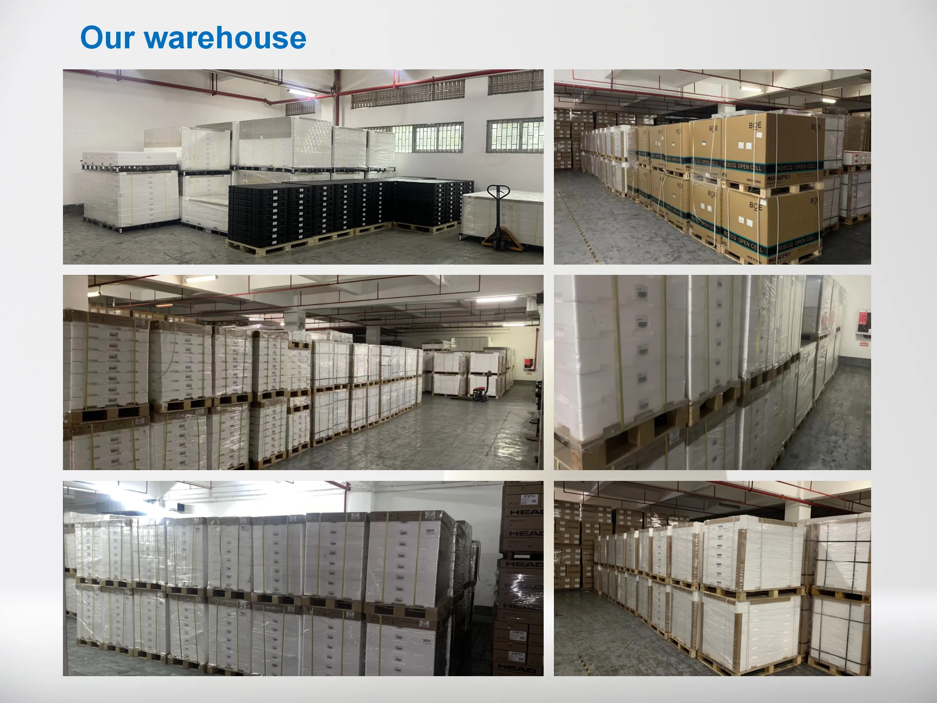 We have warehouses in Hong kong, Shenzhen, Guangzhou, stocked with most of panels in the market including many unique types.